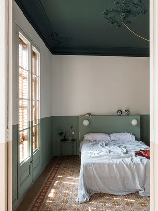 Souvent associé à la couleur blanche et à une grande hauteur sous plafond, le plafond mouluré sera perçu, logiquement, comme un élément fort, distingué et suffisant à lui-même.